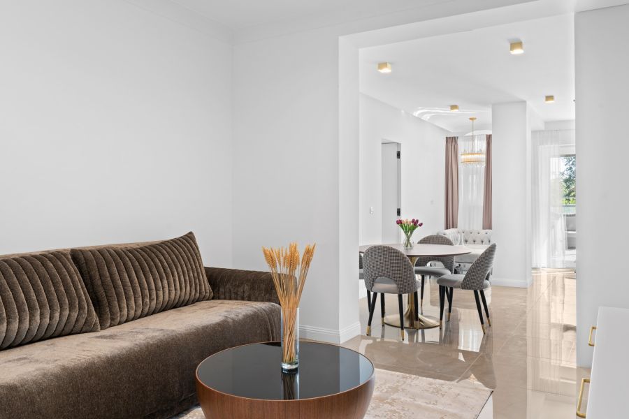Dieses Apartment verfügt über zwei stilvoll eingerichtete Schlafzimmer mit komfortablen Doppelbetten und zwei luxuriös ausgestatteten Badezimmern, die Ihnen eine erholsame Nachtruhe garantieren und den nötigen Komfort bieten. Das geräumige Wohnzimmer ist mit einer ausziehbaren Couch ausgestattet, die zusätzlichen Schlafplatz für Ihre Gäste bietet.
